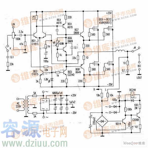 使用大功率場效應管的實用功率放大器電路 :