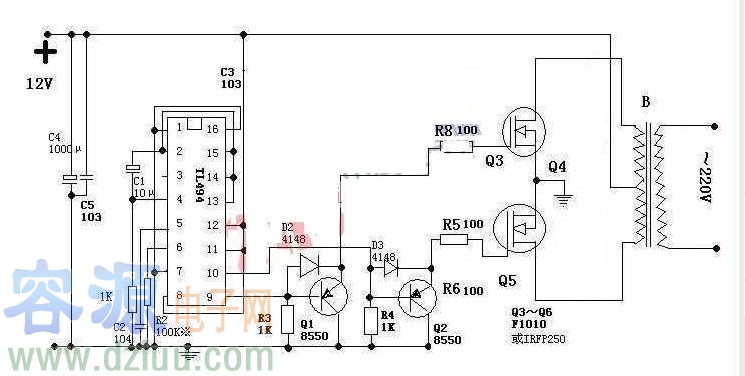 简单自制tl494逆变器电路图50hz输出,大功率输出,