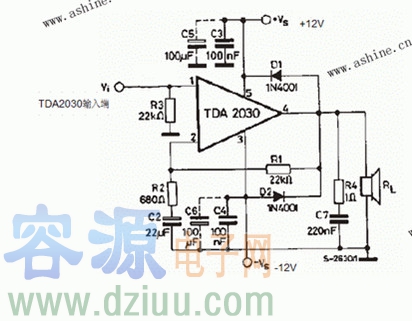 lm380集成功放电路图:有了这个简单的电路图,你可以使用立体声来驱动一个8Ω的扬声器。
