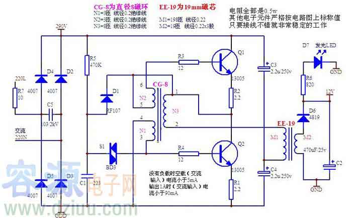 交流电源供电的大电流LED驱动电路如下图所示: 容源电子网www.dxb47.cn