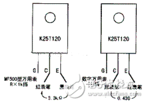 电磁炉IGBT管好坏的检测方法IGBT管的好坏可用指针万用表的Rxlk挡来检测,或用数字万用表的“二极管”挡来测量PN结正向压降进行判断。检测前先将IGBT管三只引脚短